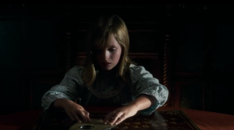 그 위자 보드를 잘 좀 치워두지 그냥 식탁 위에 올려두고 나갑니다.그렇게 얼마 뒤 작은 딸 도리스(룰루 윌슨)가 나와서 아빠를 찾는 위자를 시작합니다. 그리고 위자를 통해서 돌아가신 아빠를 만나게 되고, 엄마와 도리스 언니 리나(애너리즈 바쏘)는 아빠를 위자를 통해서 만났다고 생각하지만.. 시간이 지날수록 이상 증세가 나타나기 시작합니다.