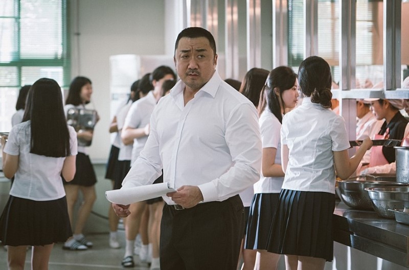 이런 곳에 새로운 기간제 교사로 역기철(마동석)선생님이 부임하게 됩니다. 학생 주임을 맡게 된 역기철은 공과금을 안낸 학생들에게 돈을 받는 역할을 맡게 됩니다. 왠지 양아치 같네요.